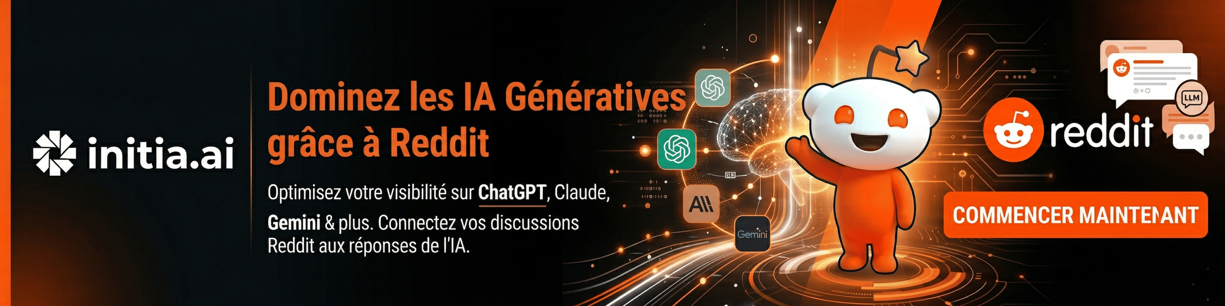 Initia.ai analyse en temps réel les discussions stratégiques (notamment sur Reddit) qui nourrissent ces IA pour y intégrer naturellement votre marque.